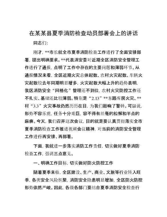 在某某县夏季消防检查动员部署会上的讲话 2024-08-22 Word模板 111 购买前,请一定要先点击这里看看,欢迎持续关注,精彩模板每天推送 预览结束,本文件为word文档,一共5页,共2435字,请购买后,下载后查看 购买前,请一定要先点击这里看看,欢迎持续关注,精彩模板每天推送 资源下载下载价格59 RMBVIP免费升级VIP点击检测网盘有效后购买有任何充值和下载问题请加微信:xuexixuexi66 0 演讲发言
