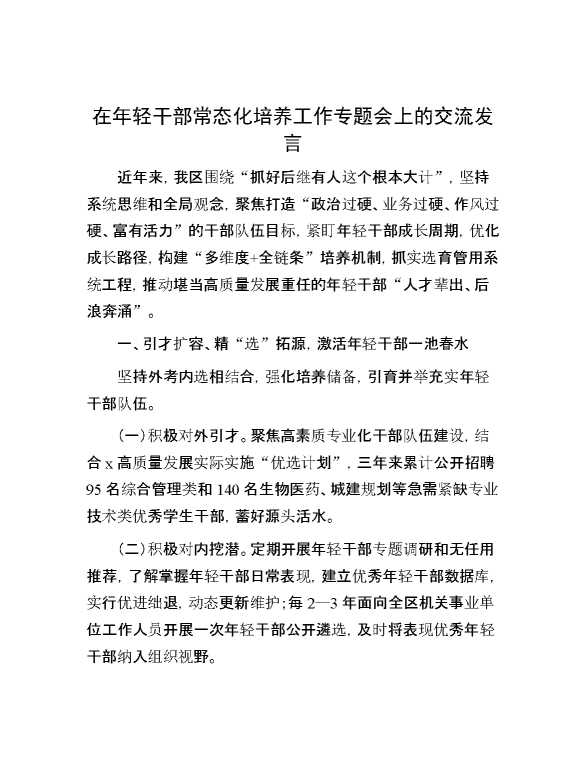 在年轻干部常态化培养工作专题会上的交流发言 2024-08-22 Word模板 120 购买前,请一定要先点击这里看看,欢迎持续关注,精彩模板每天推送 预览结束,本文件为word文档,一共3页,共1016字,请购买后,下载后查看 购买前,请一定要先点击这里看看,欢迎持续关注,精彩模板每天推送 资源下载下载价格59 RMBVIP免费升级VIP点击检测网盘有效后购买有任何充值和下载问题请加微信:xuexixuexi66 0 演讲发言