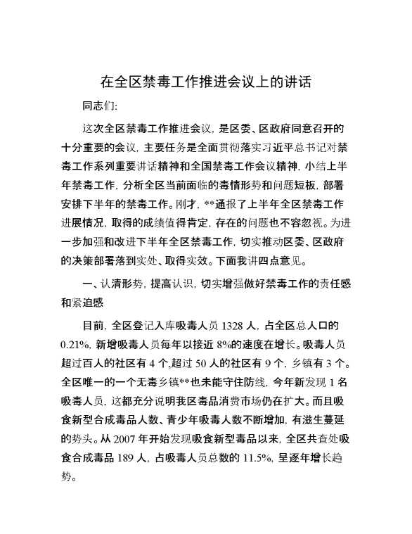 在全区禁毒工作推进会议上的讲话 2024-08-22 Word模板 114 购买前,请一定要先点击这里看看,欢迎持续关注,精彩模板每天推送 预览结束,本文件为word文档,一共9页,共4047字,请购买后,下载后查看 购买前,请一定要先点击这里看看,欢迎持续关注,精彩模板每天推送 资源下载下载价格59 RMBVIP免费升级VIP点击检测网盘有效后购买有任何充值和下载问题请加微信:xuexixuexi66 0 演讲发言