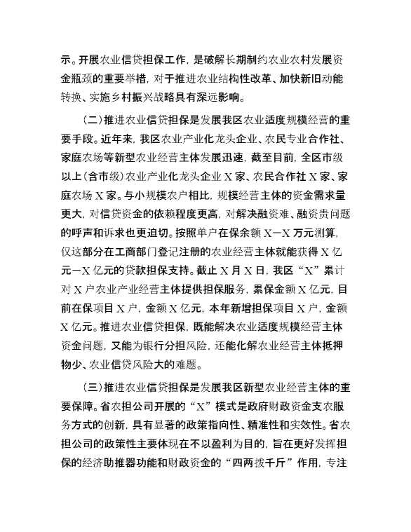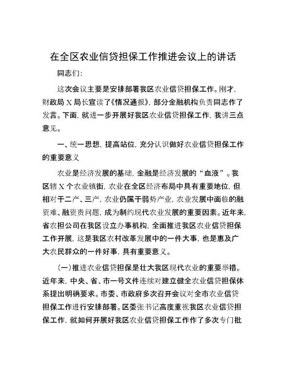 在全区农业信贷担保工作推进会议上的讲话 2024-08-22 Word模板 113 购买前,请一定要先点击这里看看,欢迎持续关注,精彩模板每天推送 预览结束,本文件为word文档,一共6页,共2805字,请购买后,下载后查看 购买前,请一定要先点击这里看看,欢迎持续关注,精彩模板每天推送 资源下载下载价格59 RMBVIP免费升级VIP点击检测网盘有效后购买有任何充值和下载问题请加微信:xuexixuexi66 0 演讲发言