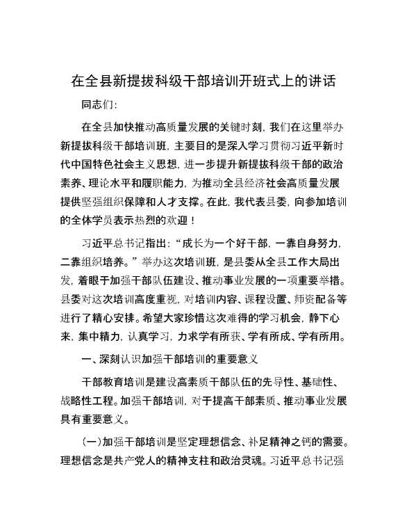 在全县新提拔科级干部培训开班式上的讲话 2024-08-22 Word模板 131 购买前,请一定要先点击这里看看,欢迎持续关注,精彩模板每天推送 预览结束,本文件为word文档,一共7页,共3024字,请购买后,下载后查看 购买前,请一定要先点击这里看看,欢迎持续关注,精彩模板每天推送 资源下载下载价格59 RMBVIP免费升级VIP点击检测网盘有效后购买有任何充值和下载问题请加微信:xuexixuexi66 0 演讲发言