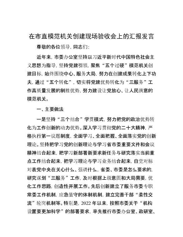 在市直模范机关创建现场验收会上的汇报发言 2024-08-22 Word模板 101 购买前,请一定要先点击这里看看,欢迎持续关注,精彩模板每天推送 预览结束,本文件为word文档,一共8页,共3555字,请购买后,下载后查看 购买前,请一定要先点击这里看看,欢迎持续关注,精彩模板每天推送 资源下载下载价格59 RMBVIP免费升级VIP点击检测网盘有效后购买有任何充值和下载问题请加微信:xuexixuexi66 0 演讲发言