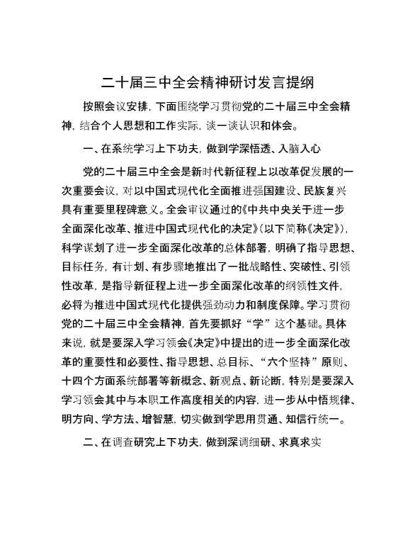 二十届三中全会精神研讨发言提纲 2024-09-02 Word模板 94 购买前,请一定要先点击这里看看,欢迎持续关注,精彩模板每天推送 预览结束,本文件为word文档,一共3页,共1363字,请购买后,下载后查看 购买前,请一定要先点击这里看看,欢迎持续关注,精彩模板每天推送 资源下载下载价格59 RMBVIP免费升级VIP点击检测网盘有效后购买有任何充值和下载问题请加微信:xuexixuexi66 0 演讲发言