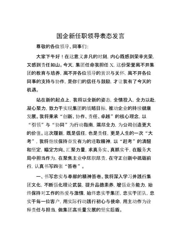 国企新任职领导表态发言 2024-09-02 Word模板 104 购买前,请一定要先点击这里看看,欢迎持续关注,精彩模板每天推送 预览结束,本文件为word文档,一共2页,共867字,请购买后,下载后查看 购买前,请一定要先点击这里看看,欢迎持续关注,精彩模板每天推送 资源下载下载价格59 RMBVIP免费升级VIP点击检测网盘有效后购买有任何充值和下载问题请加微信:xuexixuexi66 0 演讲发言