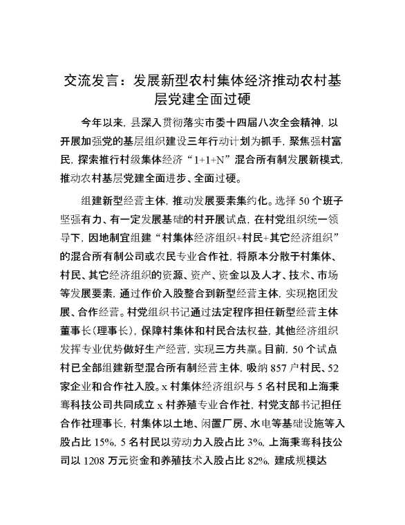 交流发言:发展新型农村集体经济 推动农村基层党建全面过硬 2024-09-02 Word模板 94 购买前,请一定要先点击这里看看,欢迎持续关注,精彩模板每天推送 预览结束,本文件为word文档,一共3页,共1296字,请购买后,下载后查看 购买前,请一定要先点击这里看看,欢迎持续关注,精彩模板每天推送 资源下载下载价格59 RMBVIP免费升级VIP点击检测网盘有效后购买有任何充值和下载问题请加微信:xuexixuexi66 0 演讲发言