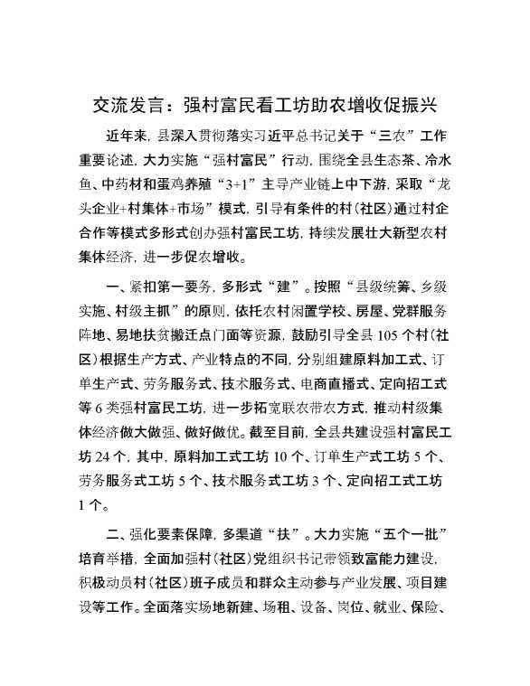 交流发言:强村富民看工坊 助农增收促振兴 2024-09-02 Word模板 108 购买前,请一定要先点击这里看看,欢迎持续关注,精彩模板每天推送 预览结束,本文件为word文档,一共3页,共1123字,请购买后,下载后查看 购买前,请一定要先点击这里看看,欢迎持续关注,精彩模板每天推送 资源下载下载价格59 RMBVIP免费升级VIP点击检测网盘有效后购买有任何充值和下载问题请加微信:xuexixuexi66 0 演讲发言