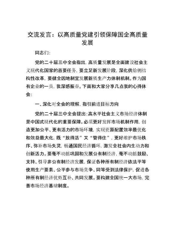交流发言:以高质量党建引领保障国企高质量发展 2024-09-02 Word模板 95 购买前,请一定要先点击这里看看,欢迎持续关注,精彩模板每天推送 预览结束,本文件为word文档,一共5页,共2081字,请购买后,下载后查看 购买前,请一定要先点击这里看看,欢迎持续关注,精彩模板每天推送 资源下载下载价格59 RMBVIP免费升级VIP点击检测网盘有效后购买有任何充值和下载问题请加微信:xuexixuexi66 0 演讲发言