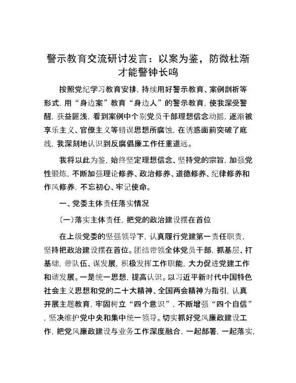 警示教育交流研讨发言:以案为鉴,防微杜渐才能警钟长鸣 2024-09-02 Word模板 98 购买前,请一定要先点击这里看看,欢迎持续关注,精彩模板每天推送 预览结束,本文件为word文档,一共6页,共2649字,请购买后,下载后查看 购买前,请一定要先点击这里看看,欢迎持续关注,精彩模板每天推送 资源下载下载价格59 RMBVIP免费升级VIP点击检测网盘有效后购买有任何充值和下载问题请加微信:xuexixuexi66 0 演讲发言