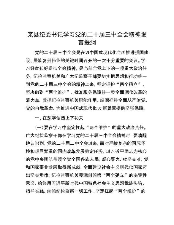 某县纪委书记学习党的二十届三中全会精神发言提纲 2024-09-02 Word模板 109 购买前,请一定要先点击这里看看,欢迎持续关注,精彩模板每天推送 预览结束,本文件为word文档,一共8页,共3822字,请购买后,下载后查看 购买前,请一定要先点击这里看看,欢迎持续关注,精彩模板每天推送 资源下载下载价格59 RMBVIP免费升级VIP点击检测网盘有效后购买有任何充值和下载问题请加微信:xuexixuexi66 0 演讲发言