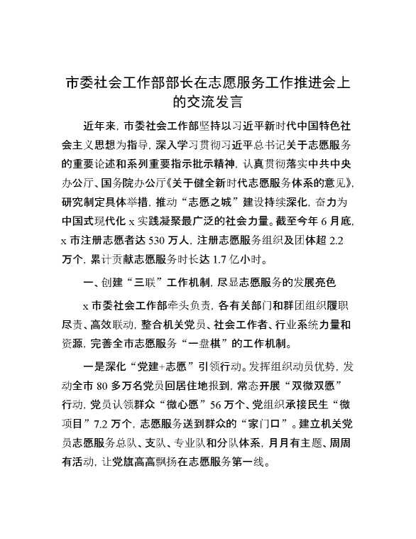 市委社会工作部部长在志愿服务工作推进会上的交流发言 2024-09-02 Word模板 107 购买前,请一定要先点击这里看看,欢迎持续关注,精彩模板每天推送 预览结束,本文件为word文档,一共4页,共1632字,请购买后,下载后查看 购买前,请一定要先点击这里看看,欢迎持续关注,精彩模板每天推送 资源下载下载价格59 RMBVIP免费升级VIP点击检测网盘有效后购买有任何充值和下载问题请加微信:xuexixuexi66 0 演讲发言