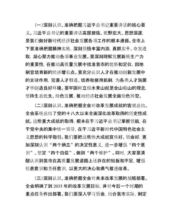 市委书记在传达党的二十届三中全会精神会议上的讲话 2024-09-02 Word模板 101 购买前,请一定要先点击这里看看,欢迎持续关注,精彩模板每天推送 预览结束,本文件为word文档,一共6页,共2883字,请购买后,下载后查看 购买前,请一定要先点击这里看看,欢迎持续关注,精彩模板每天推送 资源下载下载价格59 RMBVIP免费升级VIP点击检测网盘有效后购买有任何充值和下载问题请加微信:xuexixuexi66 0 演讲发言