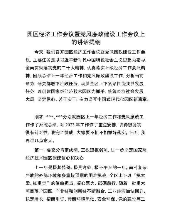 园区经济工作会议暨党风廉政建设工作会议上的讲话提纲 2024-09-02 Word模板 82 购买前,请一定要先点击这里看看,欢迎持续关注,精彩模板每天推送 预览结束,本文件为word文档,一共8页,共3918字,请购买后,下载后查看 购买前,请一定要先点击这里看看,欢迎持续关注,精彩模板每天推送 资源下载下载价格59 RMBVIP免费升级VIP点击检测网盘有效后购买有任何充值和下载问题请加微信:xuexixuexi66 0 演讲发言