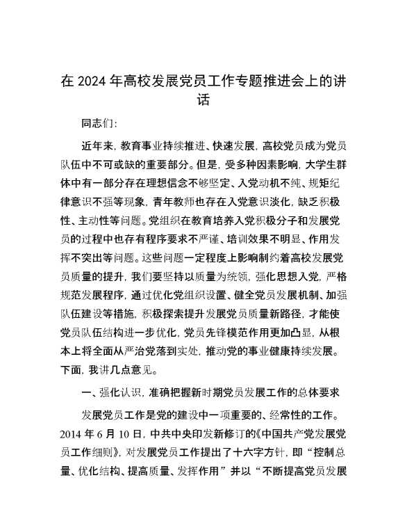 在2024年高校发展党员工作专题推进会上的讲话 2024-09-02 Word模板 79 购买前,请一定要先点击这里看看,欢迎持续关注,精彩模板每天推送 预览结束,本文件为word文档,一共8页,共3826字,请购买后,下载后查看 购买前,请一定要先点击这里看看,欢迎持续关注,精彩模板每天推送 资源下载下载价格59 RMBVIP免费升级VIP点击检测网盘有效后购买有任何充值和下载问题请加微信:xuexixuexi66 0 演讲发言