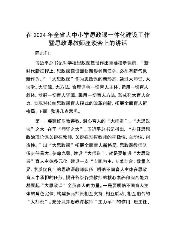 在2024年全省大中小学思政课一体化建设工作暨思政课教师座谈会上的讲话 2024-09-02 Word模板 82 购买前,请一定要先点击这里看看,欢迎持续关注,精彩模板每天推送 预览结束,本文件为word文档,一共6页,共2793字,请购买后,下载后查看 购买前,请一定要先点击这里看看,欢迎持续关注,精彩模板每天推送 资源下载下载价格59 RMBVIP免费升级VIP点击检测网盘有效后购买有任何充值和下载问题请加微信:xuexixuexi66 0 演讲发言