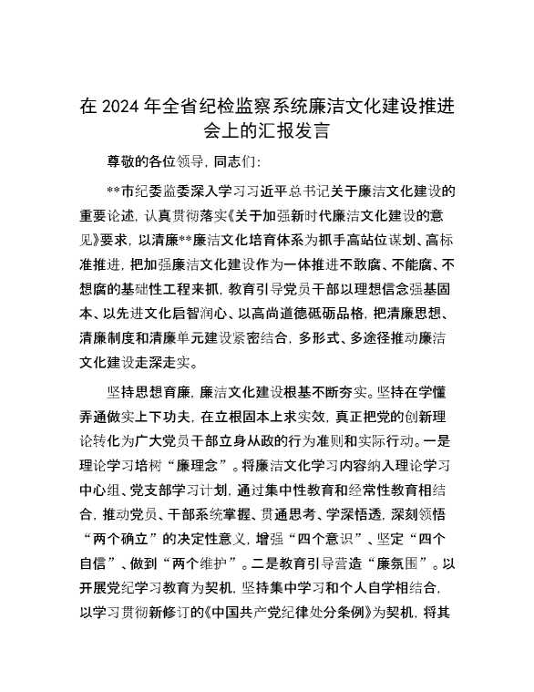 在2024年全省纪检监察系统廉洁文化建设推进会上的汇报发言 2024-09-02 Word模板 78 购买前,请一定要先点击这里看看,欢迎持续关注,精彩模板每天推送 预览结束,本文件为word文档,一共6页,共2720字,请购买后,下载后查看 购买前,请一定要先点击这里看看,欢迎持续关注,精彩模板每天推送 资源下载下载价格59 RMBVIP免费升级VIP点击检测网盘有效后购买有任何充值和下载问题请加微信:xuexixuexi66 0 演讲发言