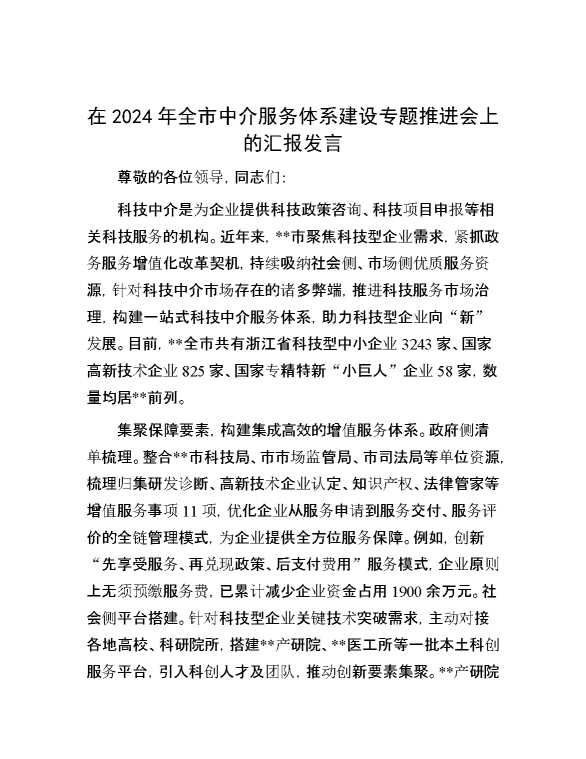 在2024年全市中介服务体系建设专题推进会上的汇报发言 2024-09-02 Word模板 87 购买前,请一定要先点击这里看看,欢迎持续关注,精彩模板每天推送 预览结束,本文件为word文档,一共4页,共1688字,请购买后,下载后查看 购买前,请一定要先点击这里看看,欢迎持续关注,精彩模板每天推送 资源下载下载价格59 RMBVIP免费升级VIP点击检测网盘有效后购买有任何充值和下载问题请加微信:xuexixuexi66 0 演讲发言