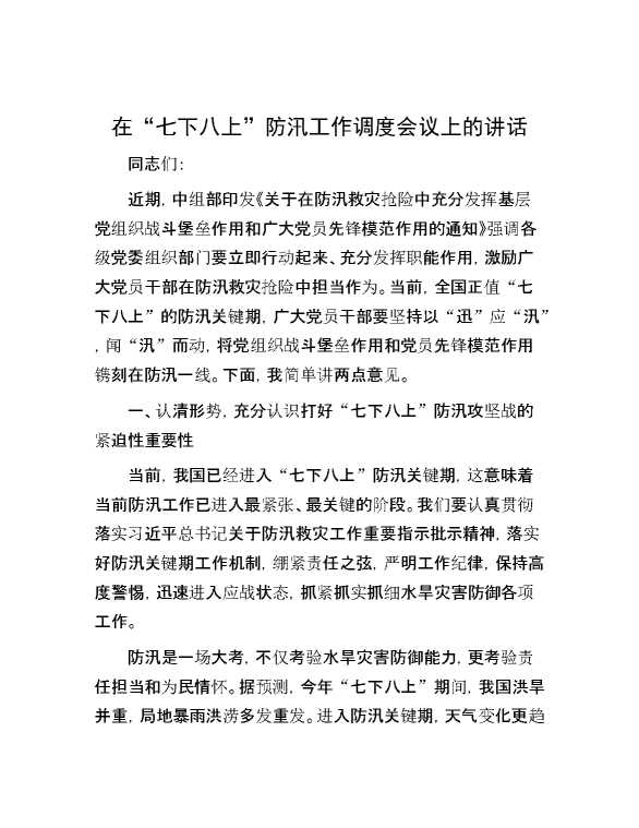 在“七下八上”防汛工作调度会议上的讲话 2024-09-02 Word模板 80 购买前,请一定要先点击这里看看,欢迎持续关注,精彩模板每天推送 预览结束,本文件为word文档,一共4页,共1582字,请购买后,下载后查看 购买前,请一定要先点击这里看看,欢迎持续关注,精彩模板每天推送 资源下载下载价格59 RMBVIP免费升级VIP点击检测网盘有效后购买有任何充值和下载问题请加微信:xuexixuexi66 0 演讲发言