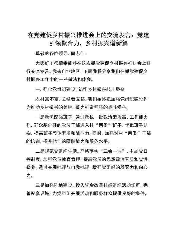 在党建促乡村振兴推进会上的交流发言:党建引领聚合力,乡村振兴谱新篇 2024-09-02 Word模板 79 购买前,请一定要先点击这里看看,欢迎持续关注,精彩模板每天推送 预览结束,本文件为word文档,一共5页,共1838字,请购买后,下载后查看 购买前,请一定要先点击这里看看,欢迎持续关注,精彩模板每天推送 资源下载下载价格59 RMBVIP免费升级VIP点击检测网盘有效后购买有任何充值和下载问题请加微信:xuexixuexi66 0 演讲发言