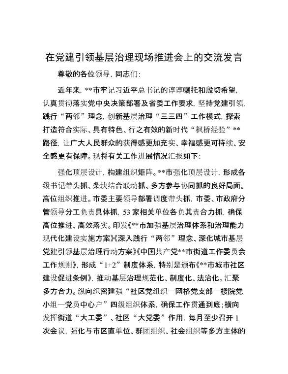 在党建引领基层治理现场推进会上的交流发言 2024-09-02 Word模板 77 购买前,请一定要先点击这里看看,欢迎持续关注,精彩模板每天推送 预览结束,本文件为word文档,一共5页,共2372字,请购买后,下载后查看 购买前,请一定要先点击这里看看,欢迎持续关注,精彩模板每天推送 资源下载下载价格59 RMBVIP免费升级VIP点击检测网盘有效后购买有任何充值和下载问题请加微信:xuexixuexi66 0 演讲发言