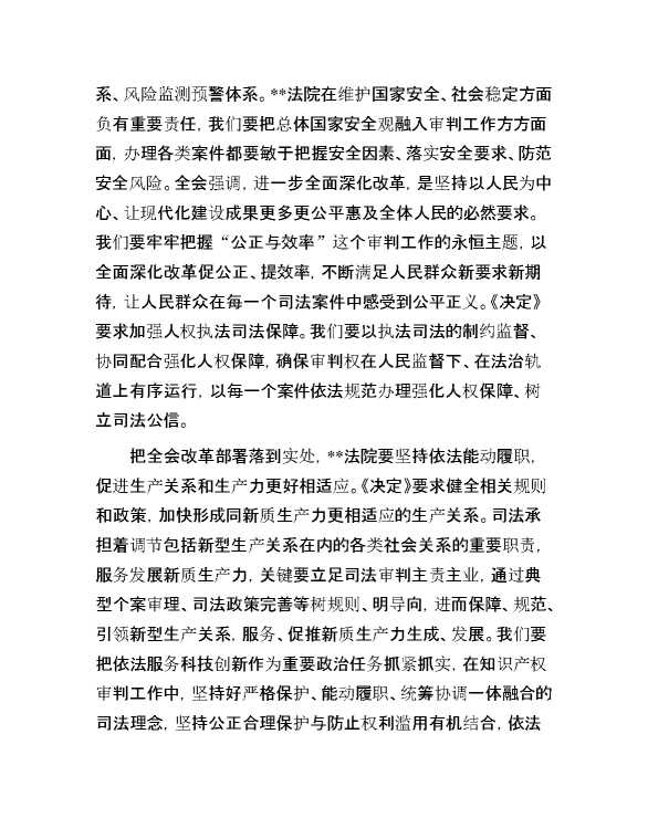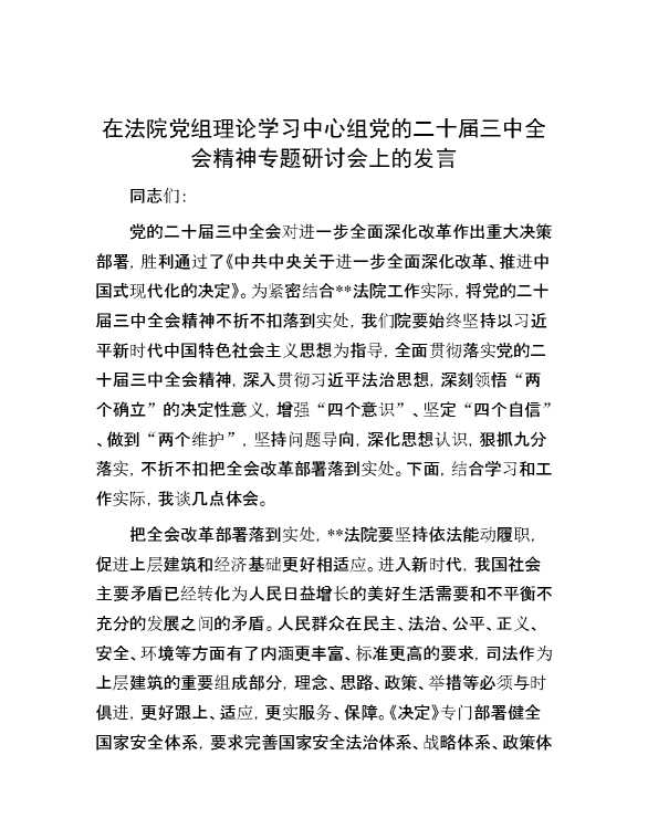 在法院党组理论学习中心组党的二十届三中全会精神专题研讨会上的发言 2024-09-02 Word模板 89 购买前,请一定要先点击这里看看,欢迎持续关注,精彩模板每天推送 预览结束,本文件为word文档,一共4页,共1652字,请购买后,下载后查看 购买前,请一定要先点击这里看看,欢迎持续关注,精彩模板每天推送 资源下载下载价格59 RMBVIP免费升级VIP点击检测网盘有效后购买有任何充值和下载问题请加微信:xuexixuexi66 0 演讲发言