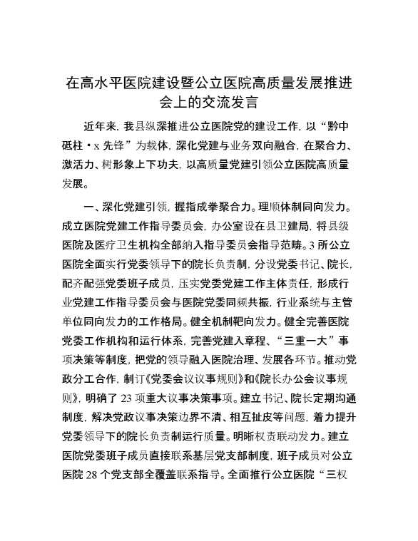 在高水平医院建设暨公立医院高质量发展推进会上的交流发言 2024-09-02 Word模板 77 购买前,请一定要先点击这里看看,欢迎持续关注,精彩模板每天推送 预览结束,本文件为word文档,一共4页,共1852字,请购买后,下载后查看 购买前,请一定要先点击这里看看,欢迎持续关注,精彩模板每天推送 资源下载下载价格59 RMBVIP免费升级VIP点击检测网盘有效后购买有任何充值和下载问题请加微信:xuexixuexi66 0 演讲发言
