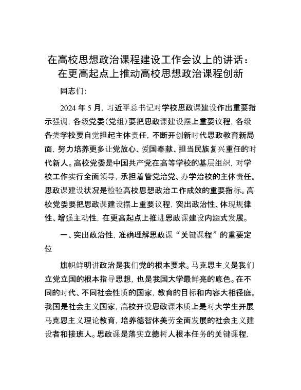 在高校思想政治课程建设工作会议上的讲话:在更高起点上推动高校思想政治课程创新 2024-09-02 Word模板 80 购买前,请一定要先点击这里看看,欢迎持续关注,精彩模板每天推送 预览结束,本文件为word文档,一共5页,共2406字,请购买后,下载后查看 购买前,请一定要先点击这里看看,欢迎持续关注,精彩模板每天推送 资源下载下载价格59 RMBVIP免费升级VIP点击检测网盘有效后购买有任何充值和下载问题请加微信:xuexixuexi66 0 演讲发言