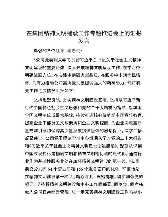 在集团精神文明建设工作专题推进会上的汇报发言 2024-09-02 Word模板 84 购买前,请一定要先点击这里看看,欢迎持续关注,精彩模板每天推送 预览结束,本文件为word文档,一共5页,共2468字,请购买后,下载后查看 购买前,请一定要先点击这里看看,欢迎持续关注,精彩模板每天推送 资源下载下载价格59 RMBVIP免费升级VIP点击检测网盘有效后购买有任何充值和下载问题请加微信:xuexixuexi66 0 演讲发言