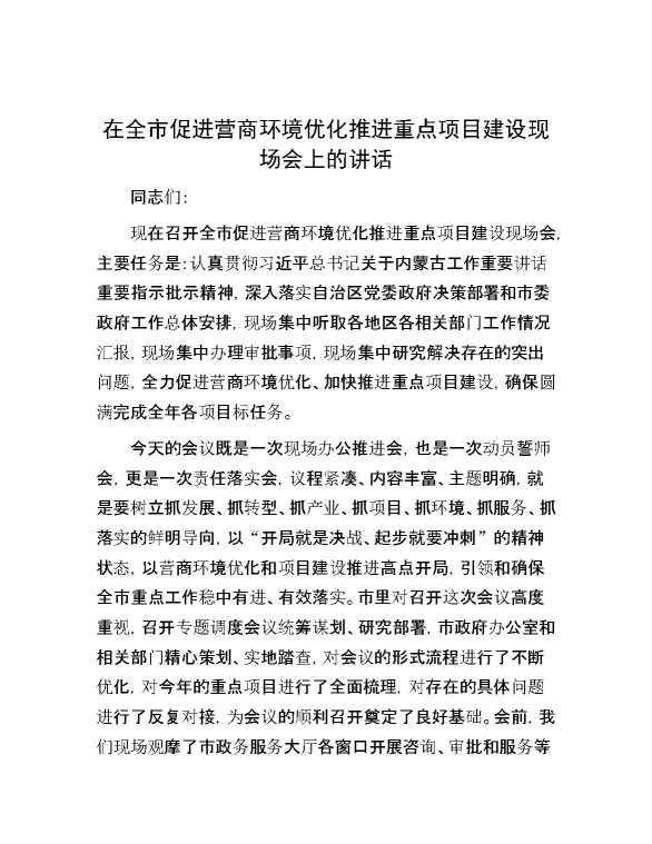 在全市促进营商环境优化推进重点项目建设现场会上的讲话 2024-09-02 Word模板 73 购买前,请一定要先点击这里看看,欢迎持续关注,精彩模板每天推送 预览结束,本文件为word文档,一共10页,共4723字,请购买后,下载后查看 购买前,请一定要先点击这里看看,欢迎持续关注,精彩模板每天推送 资源下载下载价格59 RMBVIP免费升级VIP点击检测网盘有效后购买有任何充值和下载问题请加微信:xuexixuexi66 0 演讲发言