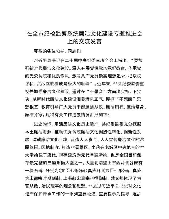 在全市纪检监察系统廉洁文化建设专题推进会上的交流发言 2024-09-02 Word模板 80 购买前,请一定要先点击这里看看,欢迎持续关注,精彩模板每天推送 预览结束,本文件为word文档,一共4页,共1755字,请购买后,下载后查看 购买前,请一定要先点击这里看看,欢迎持续关注,精彩模板每天推送 资源下载下载价格59 RMBVIP免费升级VIP点击检测网盘有效后购买有任何充值和下载问题请加微信:xuexixuexi66 0 演讲发言