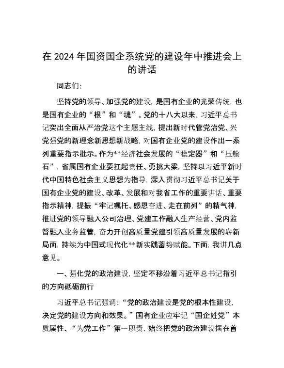 在2024年国资国企系统党的建设年中推进会上的讲话 2024-09-15 Word模板 75 购买前,请一定要先点击这里看看,欢迎持续关注,精彩模板每天推送 预览结束,本文件为word文档,一共11页,共5198字,请购买后,下载后查看 购买前,请一定要先点击这里看看,欢迎持续关注,精彩模板每天推送 资源下载下载价格29 RMBVIP免费升级VIP点击检测网盘有效后购买有任何充值和下载问题请加微信:xuexixuexi66 0 演讲发言