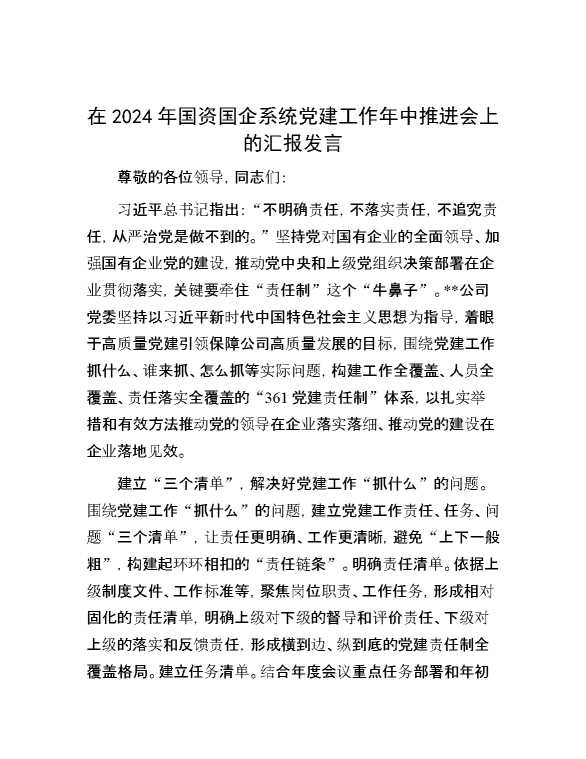 在2024年国资国企系统党建工作年中推进会上的汇报发言 2024-09-15 Word模板 74 购买前,请一定要先点击这里看看,欢迎持续关注,精彩模板每天推送 预览结束,本文件为word文档,一共5页,共2150字,请购买后,下载后查看 购买前,请一定要先点击这里看看,欢迎持续关注,精彩模板每天推送 资源下载下载价格29 RMBVIP免费升级VIP点击检测网盘有效后购买有任何充值和下载问题请加微信:xuexixuexi66 0 演讲发言