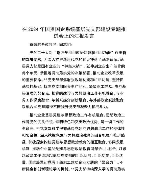 在2024年国资国企系统基层党支部建设专题推进会上的汇报发言 2024-09-15 Word模板 76 购买前,请一定要先点击这里看看,欢迎持续关注,精彩模板每天推送 预览结束,本文件为word文档,一共6页,共3015字,请购买后,下载后查看 购买前,请一定要先点击这里看看,欢迎持续关注,精彩模板每天推送 资源下载下载价格29 RMBVIP免费升级VIP点击检测网盘有效后购买有任何充值和下载问题请加微信:xuexixuexi66 0 演讲发言