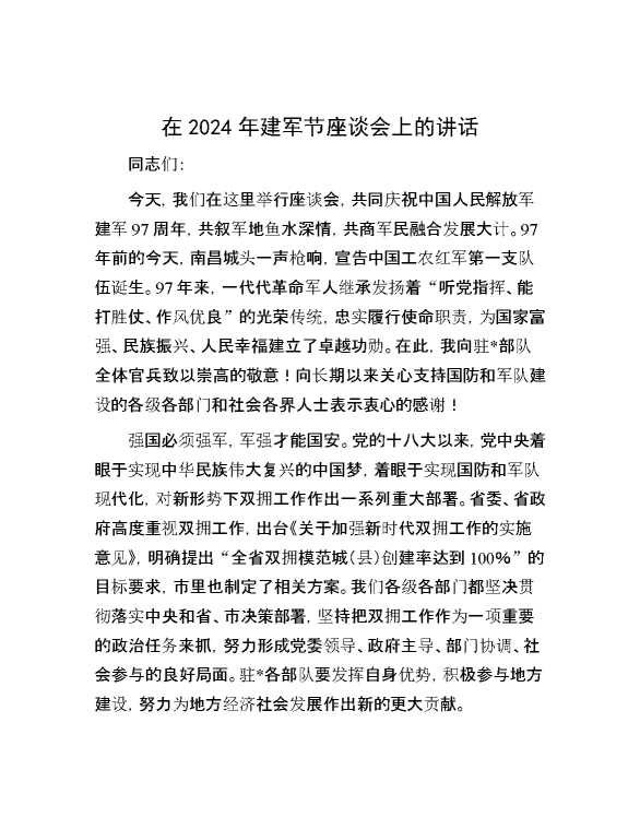 在2024年建军节座谈会上的讲话 2024-09-15 Word模板 79 购买前,请一定要先点击这里看看,欢迎持续关注,精彩模板每天推送 预览结束,本文件为word文档,一共3页,共1426字,请购买后,下载后查看 购买前,请一定要先点击这里看看,欢迎持续关注,精彩模板每天推送 资源下载下载价格29 RMBVIP免费升级VIP点击检测网盘有效后购买有任何充值和下载问题请加微信:xuexixuexi66 0 演讲发言