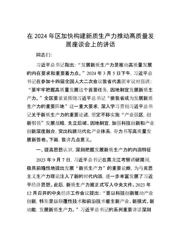 在2024年区加快构建新质生产力推动高质量发展座谈会上的讲话 2024-09-15 Word模板 87 购买前,请一定要先点击这里看看,欢迎持续关注,精彩模板每天推送 预览结束,本文件为word文档,一共9页,共4519字,请购买后,下载后查看 购买前,请一定要先点击这里看看,欢迎持续关注,精彩模板每天推送 资源下载下载价格29 RMBVIP免费升级VIP点击检测网盘有效后购买有任何充值和下载问题请加微信:xuexixuexi66 0 演讲发言