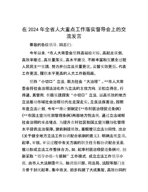 在2024年全省人大重点工作落实督导会上的交流发言 2024-09-15 Word模板 82 购买前,请一定要先点击这里看看,欢迎持续关注,精彩模板每天推送 预览结束,本文件为word文档,一共4页,共2018字,请购买后,下载后查看 购买前,请一定要先点击这里看看,欢迎持续关注,精彩模板每天推送 资源下载下载价格29 RMBVIP免费升级VIP点击检测网盘有效后购买有任何充值和下载问题请加微信:xuexixuexi66 0 演讲发言