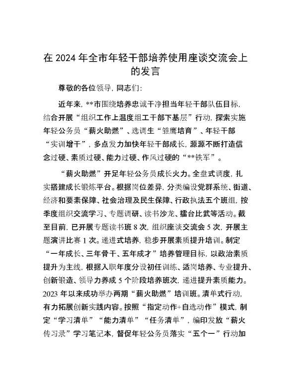 在2024年全市年轻干部培养使用座谈交流会上的发言 2024-09-15 Word模板 79 购买前,请一定要先点击这里看看,欢迎持续关注,精彩模板每天推送 预览结束,本文件为word文档,一共4页,共1518字,请购买后,下载后查看 购买前,请一定要先点击这里看看,欢迎持续关注,精彩模板每天推送 资源下载下载价格29 RMBVIP免费升级VIP点击检测网盘有效后购买有任何充值和下载问题请加微信:xuexixuexi66 0 演讲发言