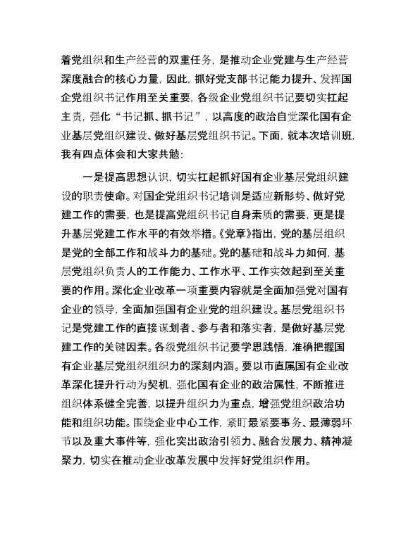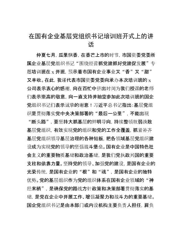 在国有企业基层党组织书记培训班开式上的讲话 2024-09-15 Word模板 82 购买前,请一定要先点击这里看看,欢迎持续关注,精彩模板每天推送 预览结束,本文件为word文档,一共5页,共2527字,请购买后,下载后查看 购买前,请一定要先点击这里看看,欢迎持续关注,精彩模板每天推送 资源下载下载价格29 RMBVIP免费升级VIP点击检测网盘有效后购买有任何充值和下载问题请加微信:xuexixuexi66 0 演讲发言