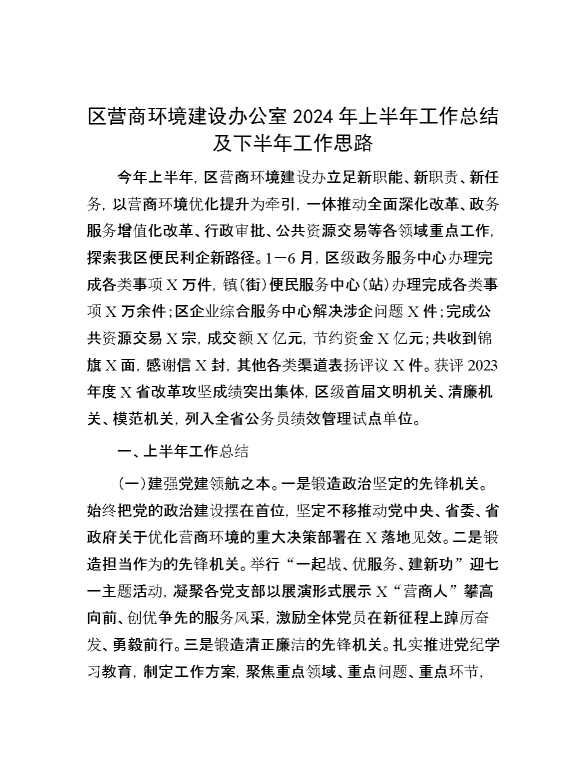 区营商环境建设办公室2024年上半年工作总结及下半年工作思路 2024-09-15 Word模板 93 购买前,请一定要先点击这里看看,欢迎持续关注,精彩模板每天推送 预览结束,本文件为word文档,一共5页,共2437字,请购买后,下载后查看 购买前,请一定要先点击这里看看,欢迎持续关注,精彩模板每天推送 资源下载下载价格29 RMBVIP免费升级VIP点击检测网盘有效后购买有任何充值和下载问题请加微信:xuexixuexi66 0 总结汇报