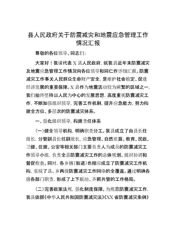 县人民政府关于防震减灾和地震应急管理工作情况汇报 2024-09-15 Word模板 95 购买前,请一定要先点击这里看看,欢迎持续关注,精彩模板每天推送 预览结束,本文件为word文档,一共5页,共1952字,请购买后,下载后查看 购买前,请一定要先点击这里看看,欢迎持续关注,精彩模板每天推送 资源下载下载价格29 RMBVIP免费升级VIP点击检测网盘有效后购买有任何充值和下载问题请加微信:xuexixuexi66 0 总结汇报