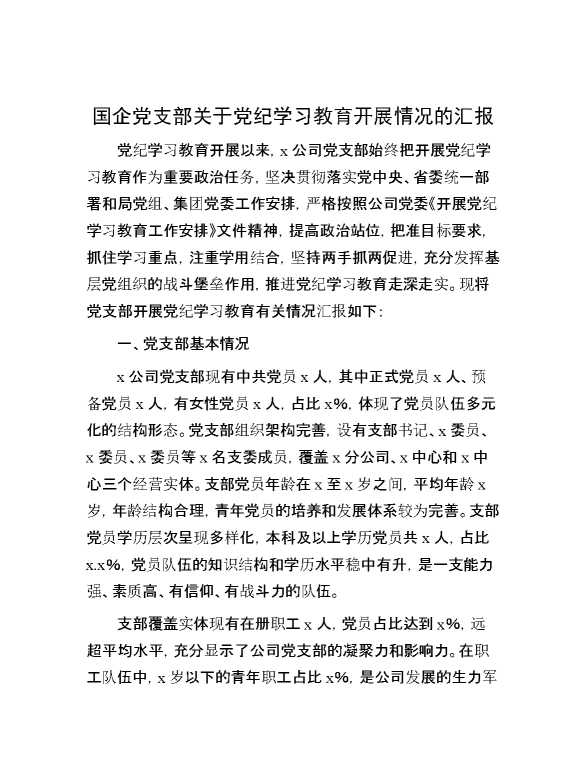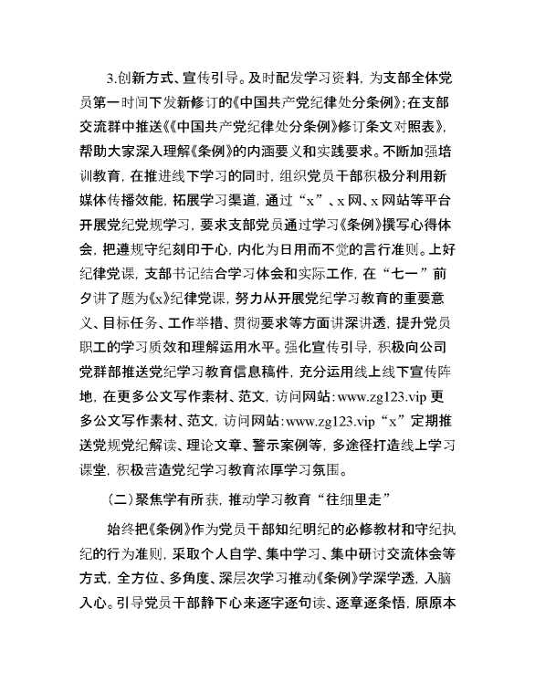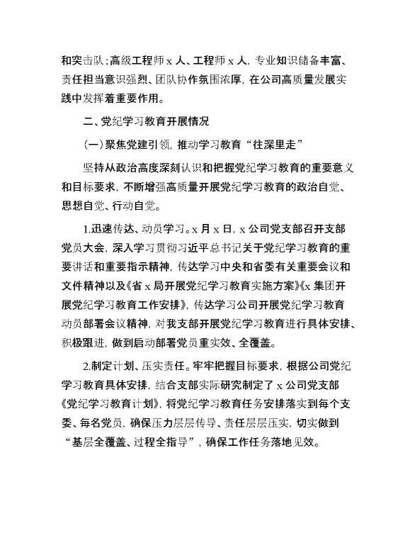 国企党支部关于党纪学习教育开展情况的汇报 2024-09-19 Word模板 72 购买前,请一定要先点击这里看看,欢迎持续关注,精彩模板每天推送 预览结束,本文件为word文档,一共10页,共4438字,请购买后,下载后查看 购买前,请一定要先点击这里看看,欢迎持续关注,精彩模板每天推送 资源下载下载价格29 RMBVIP免费升级VIP点击检测网盘有效后购买有任何充值和下载问题请加微信:xuexixuexi66 0 总结汇报