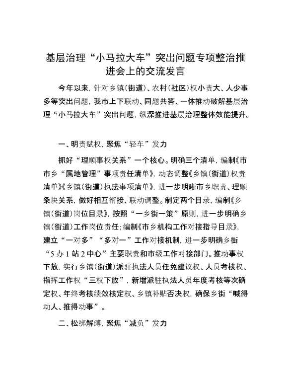 基层治理“小马拉大车”突出问题专项整治推进会上的交流发言 2024-09-19 Word模板 76 购买前,请一定要先点击这里看看,欢迎持续关注,精彩模板每天推送 预览结束,本文件为word文档,一共3页,共1312字,请购买后,下载后查看 购买前,请一定要先点击这里看看,欢迎持续关注,精彩模板每天推送 资源下载下载价格29 RMBVIP免费升级VIP点击检测网盘有效后购买有任何充值和下载问题请加微信:xuexixuexi66 0 演讲发言