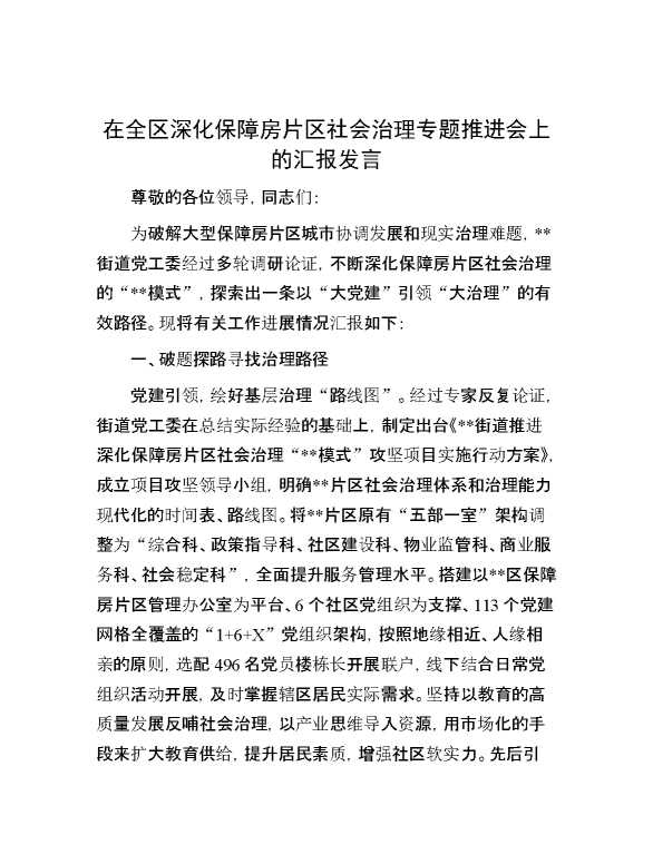 在全区深化保障房片区社会治理专题推进会上的汇报发言 2024-09-23 Word模板 88 购买前,请一定要先点击这里看看,欢迎持续关注,精彩模板每天推送 预览结束,本文件为word文档,一共4页,共1953字,请购买后,下载后查看 购买前,请一定要先点击这里看看,欢迎持续关注,精彩模板每天推送 资源下载下载价格29 RMBVIP免费升级VIP点击检测网盘有效后购买有任何充值和下载问题请加微信:xuexixuexi66 0 演讲发言