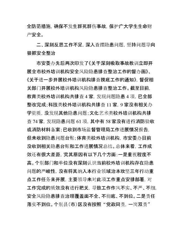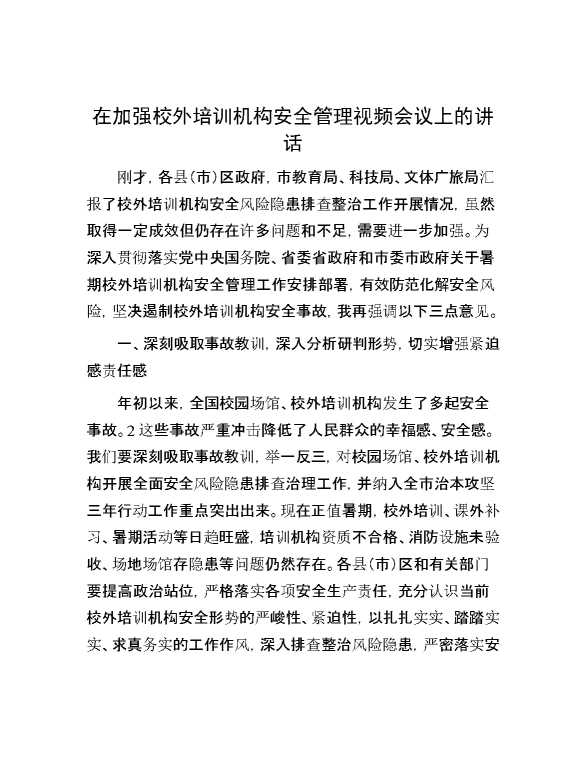 在加强校外培训机构安全管理视频会议上的讲话 2024-09-23 Word模板 97 购买前,请一定要先点击这里看看,欢迎持续关注,精彩模板每天推送 预览结束,本文件为word文档,一共4页,共1953字,请购买后,下载后查看 购买前,请一定要先点击这里看看,欢迎持续关注,精彩模板每天推送 资源下载下载价格29 RMBVIP免费升级VIP点击检测网盘有效后购买有任何充值和下载问题请加微信:xuexixuexi66 0 演讲发言