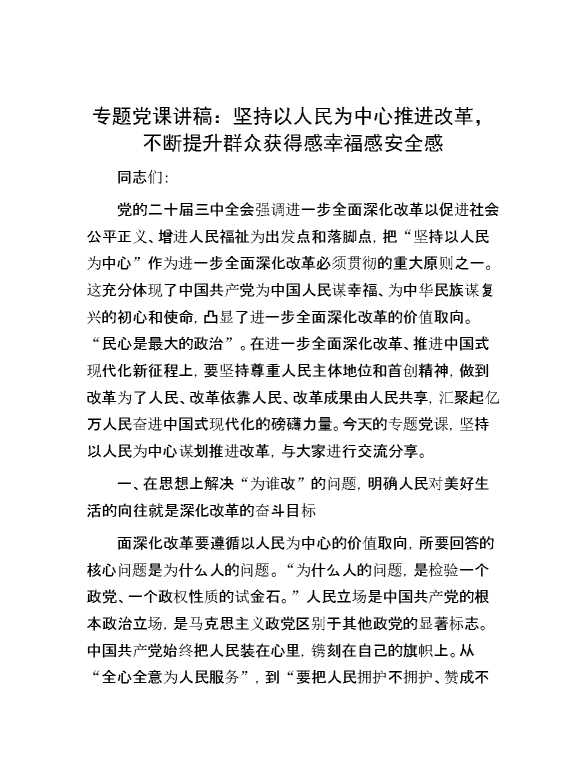 专题党课讲稿:坚持以人民为中心推进改革,不断提升群众获得感幸福感安全感 2024-09-23 Word模板 101 购买前,请一定要先点击这里看看,欢迎持续关注,精彩模板每天推送 预览结束,本文件为word文档,一共12页,共5998字,请购买后,下载后查看 购买前,请一定要先点击这里看看,欢迎持续关注,精彩模板每天推送 资源下载下载价格29 RMBVIP免费升级VIP点击检测网盘有效后购买有任何充值和下载问题请加微信:xuexixuexi66 0 党课及生活会