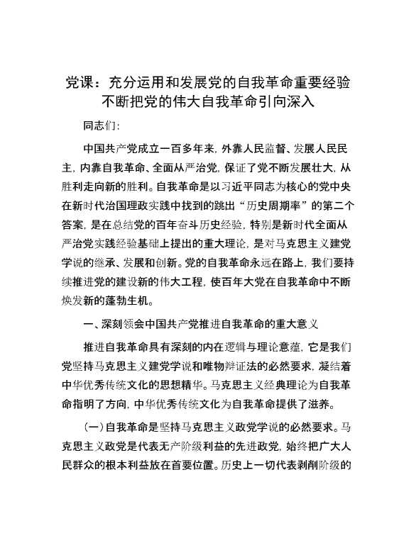 党课:充分运用和发展党的自我革命重要经验 不断把党的伟大自我革命引向深入 2024-09-23 Word模板 71 购买前,请一定要先点击这里看看,欢迎持续关注,精彩模板每天推送 预览结束,本文件为word文档,一共12页,共5807字,请购买后,下载后查看 购买前,请一定要先点击这里看看,欢迎持续关注,精彩模板每天推送 资源下载下载价格29 RMBVIP免费升级VIP点击检测网盘有效后购买有任何充值和下载问题请加微信:xuexixuexi66 0 党课及生活会