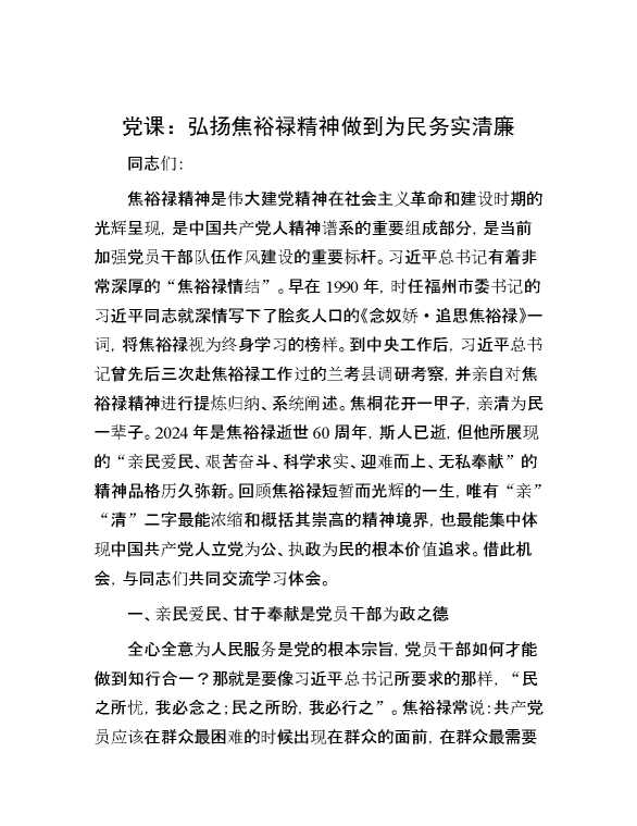 党课:弘扬焦裕禄精神 做到为民务实清廉 2024-09-23 Word模板 69 购买前,请一定要先点击这里看看,欢迎持续关注,精彩模板每天推送 预览结束,本文件为word文档,一共7页,共3074字,请购买后,下载后查看 购买前,请一定要先点击这里看看,欢迎持续关注,精彩模板每天推送 资源下载下载价格29 RMBVIP免费升级VIP点击检测网盘有效后购买有任何充值和下载问题请加微信:xuexixuexi66 0 党课及生活会