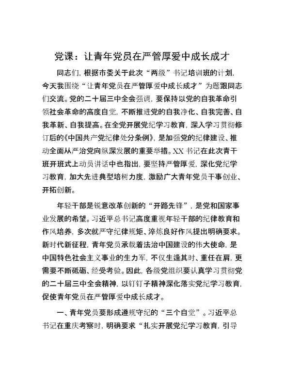 党课:让青年党员在严管厚爱中成长成才 2024-09-23 Word模板 78 购买前,请一定要先点击这里看看,欢迎持续关注,精彩模板每天推送 预览结束,本文件为word文档,一共6页,共2686字,请购买后,下载后查看 购买前,请一定要先点击这里看看,欢迎持续关注,精彩模板每天推送 资源下载下载价格29 RMBVIP免费升级VIP点击检测网盘有效后购买有任何充值和下载问题请加微信:xuexixuexi66 0 党课及生活会