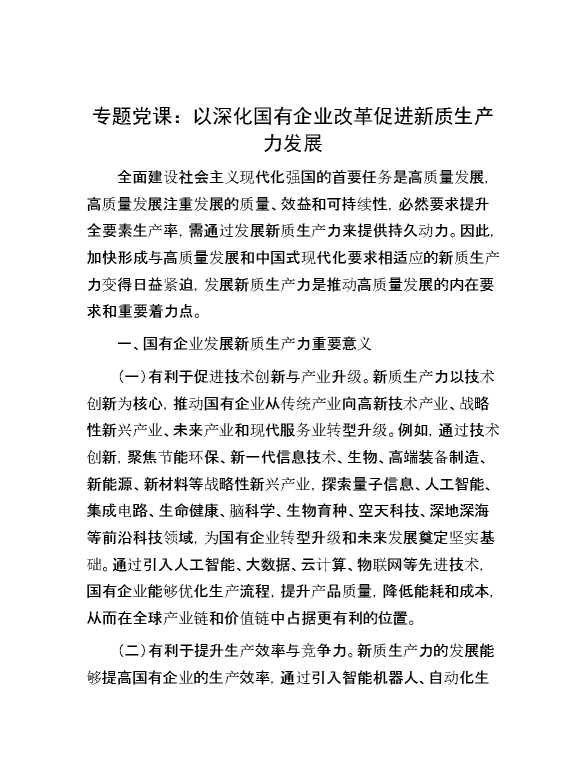 专题党课:以深化国有企业改革促进新质生产力发展 2024-09-23 Word模板 74 购买前,请一定要先点击这里看看,欢迎持续关注,精彩模板每天推送 预览结束,本文件为word文档,一共9页,共4204字,请购买后,下载后查看 购买前,请一定要先点击这里看看,欢迎持续关注,精彩模板每天推送 资源下载下载价格29 RMBVIP免费升级VIP点击检测网盘有效后购买有任何充值和下载问题请加微信:xuexixuexi66 0 党课及生活会