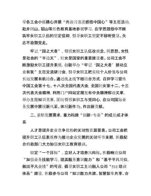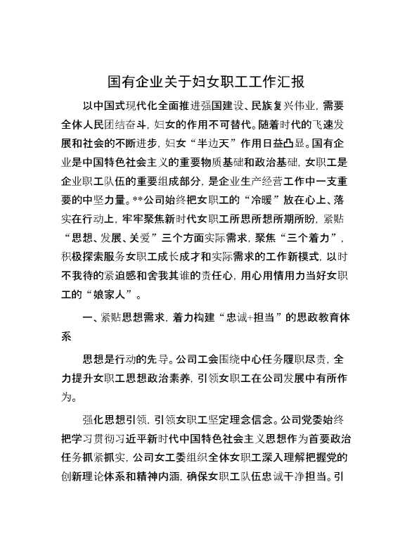 国有企业关于妇女职工工作汇报 2024-09-25 Word模板 76 购买前,请一定要先点击这里看看,欢迎持续关注,精彩模板每天推送 预览结束,本文件为word文档,一共6页,共2684字,请购买后,下载后查看 购买前,请一定要先点击这里看看,欢迎持续关注,精彩模板每天推送 资源下载下载价格29 RMBVIP免费升级VIP点击检测网盘有效后购买有任何充值和下载问题请加微信:xuexixuexi66 0 总结汇报