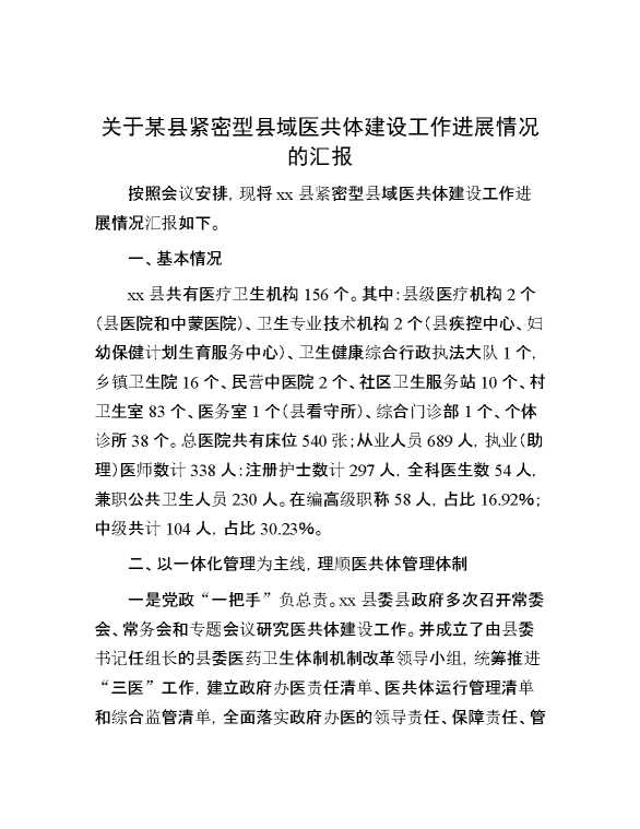 关于某县紧密型县域医共体建设工作进展情况的汇报 2024-09-25 Word模板 84 购买前,请一定要先点击这里看看,欢迎持续关注,精彩模板每天推送 预览结束,本文件为word文档,一共7页,共3496字,请购买后,下载后查看 购买前,请一定要先点击这里看看,欢迎持续关注,精彩模板每天推送 资源下载下载价格29 RMBVIP免费升级VIP点击检测网盘有效后购买有任何充值和下载问题请加微信:xuexixuexi66 0 总结汇报